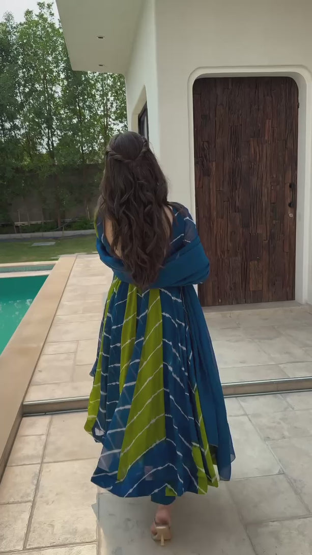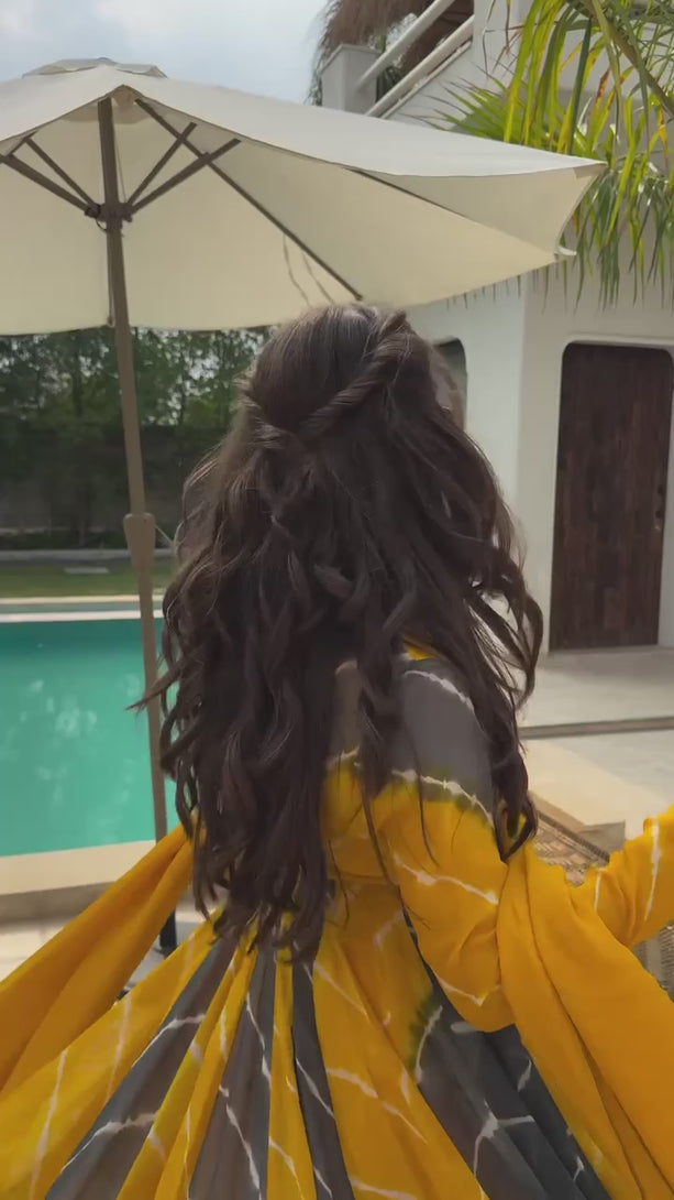 Tranding Yellow And Blue Organza Anarkali Suit Set TD-6007