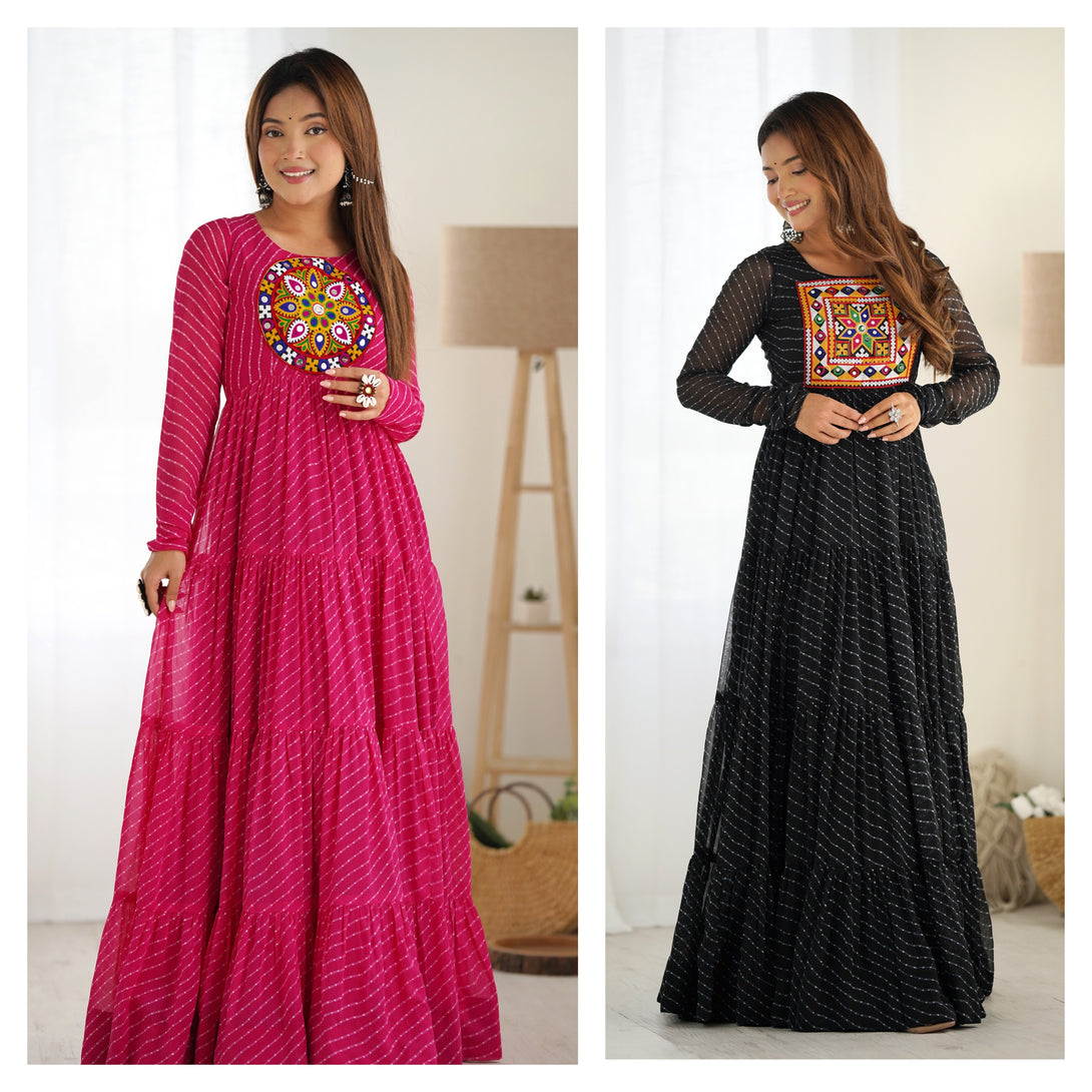 Wonderful Georgette Laheriya Print Pink And Black Color Gown NKB-43